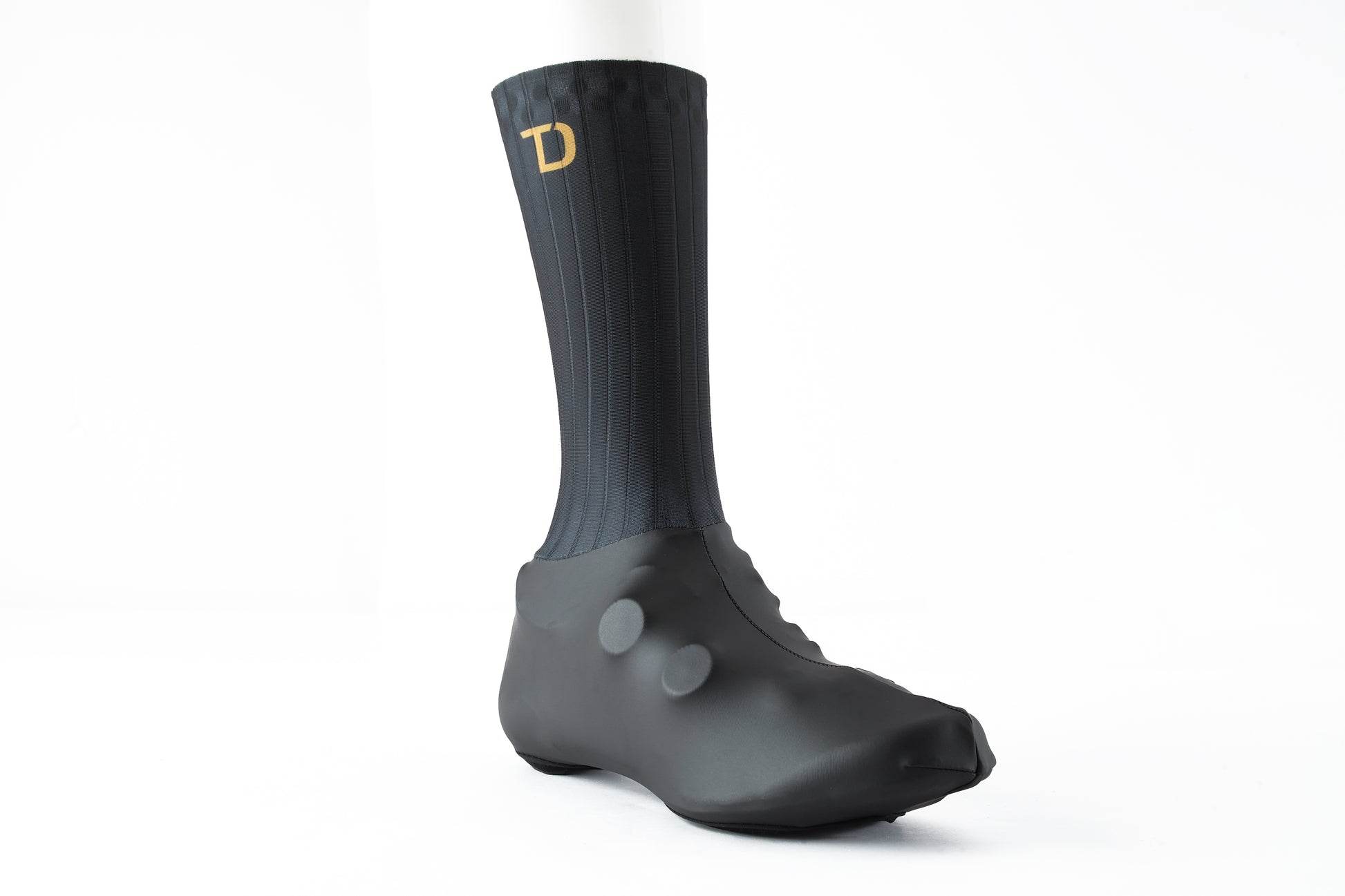 When every second counts - AeroFit Shoe Covers provide a smooth, aerodynamic flow around the shoe, with a high cuff sock that continues the aero benefits. Made from a PU-coated stretch fabric, the AeroFit Shoe Cover will provide a snug fit over your shoe.